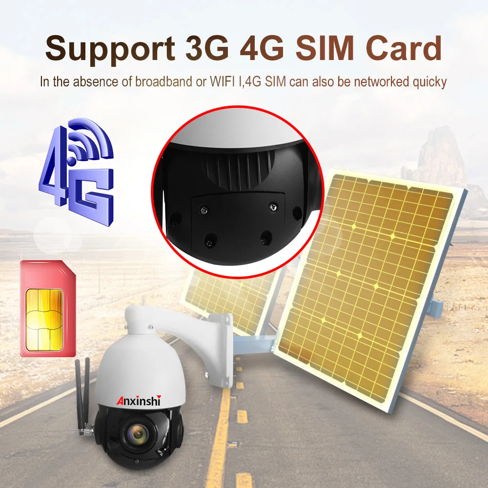 Dual Solar panel for Auto tracking 5MP HD WiFi 4G IP camera SIM card TF card slot supply 80A batter