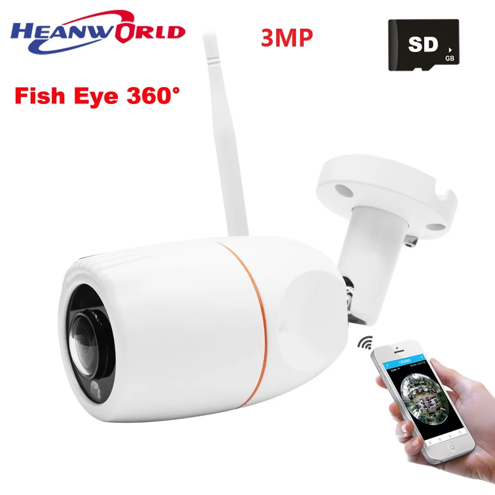 Fish Eye Wifi IP Camera 3MP Outdoor 3.0MP Wireless security Camera Full HD SD Slot CCTV surveillanc