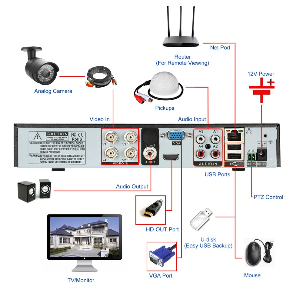 Home Security CCTV AHD DVR 4Ch 1080P Video Recorder 4CH 1080P 5MP NVR Onvif P2P Cloud Work For CCTV