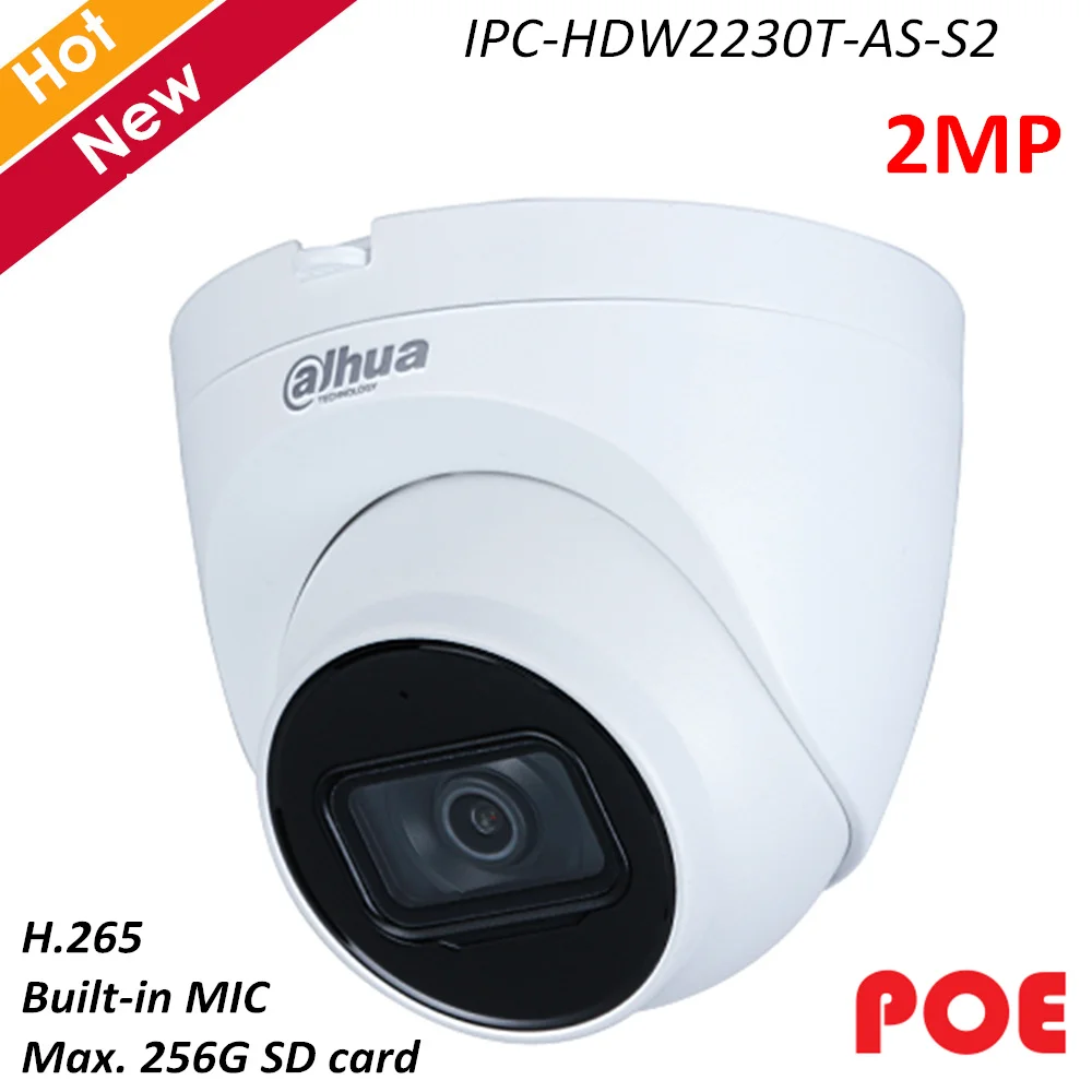 TOP Dahua 2mp IP Camera IPC-HDW2230T-AS-S2 H.265 built-in Mic Rotation Mode Intelligent detection Suppo