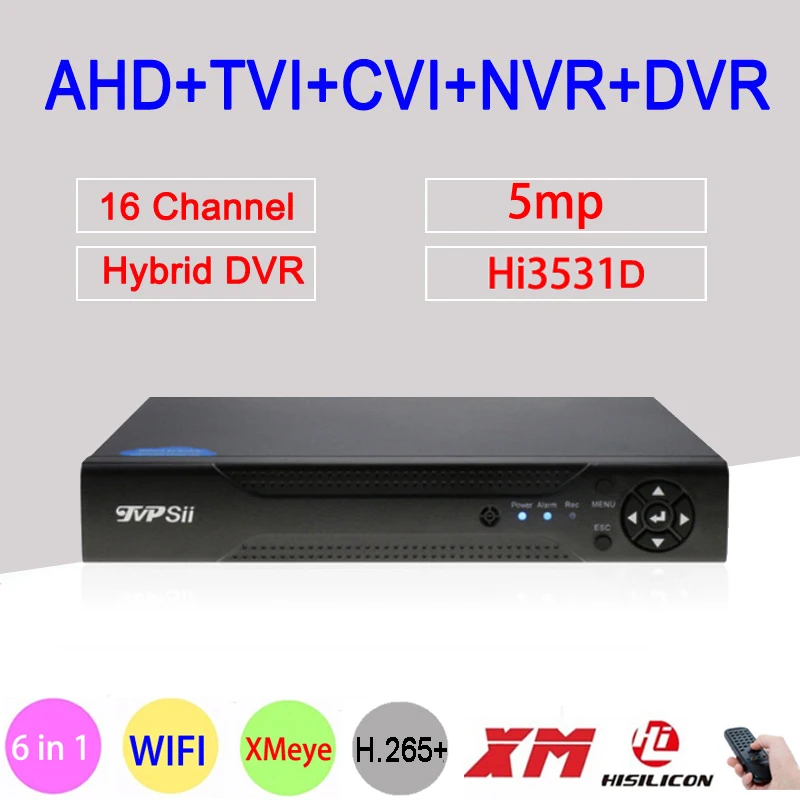 5MP Surveillance Camera Xmeye H.265+ Hi3531D 16 Channel 16CH 6 in 1 Wifi Hybrid XVI NVR CVI TVi AHD