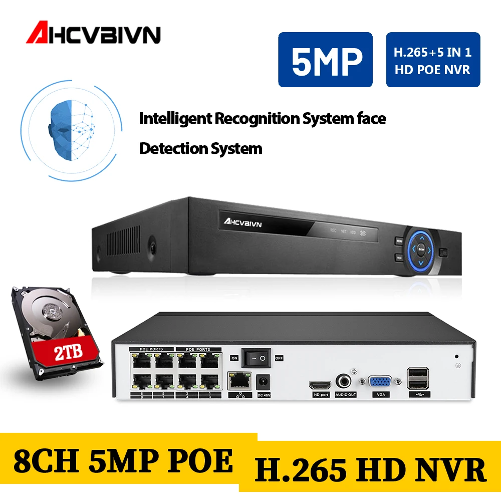H.265 Real 8CH 5MP Network POE NVR Video Recorder 8CH 5MP 16CH 5MP NVR for video Surveillance IP Ca
